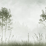 Fotomurales Paisaje brumoso con árboles y hierba