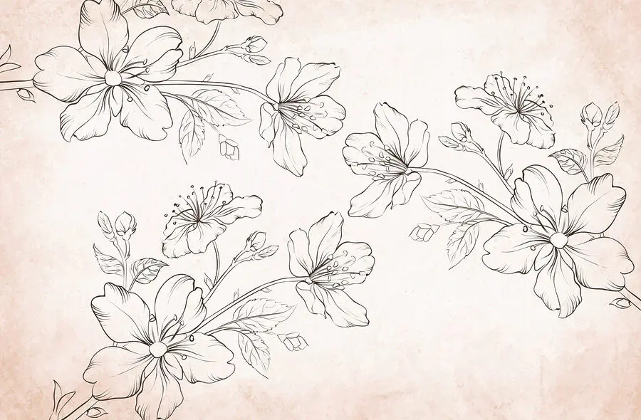 Fotomurales Dibujo de flores sobre fondo blanco