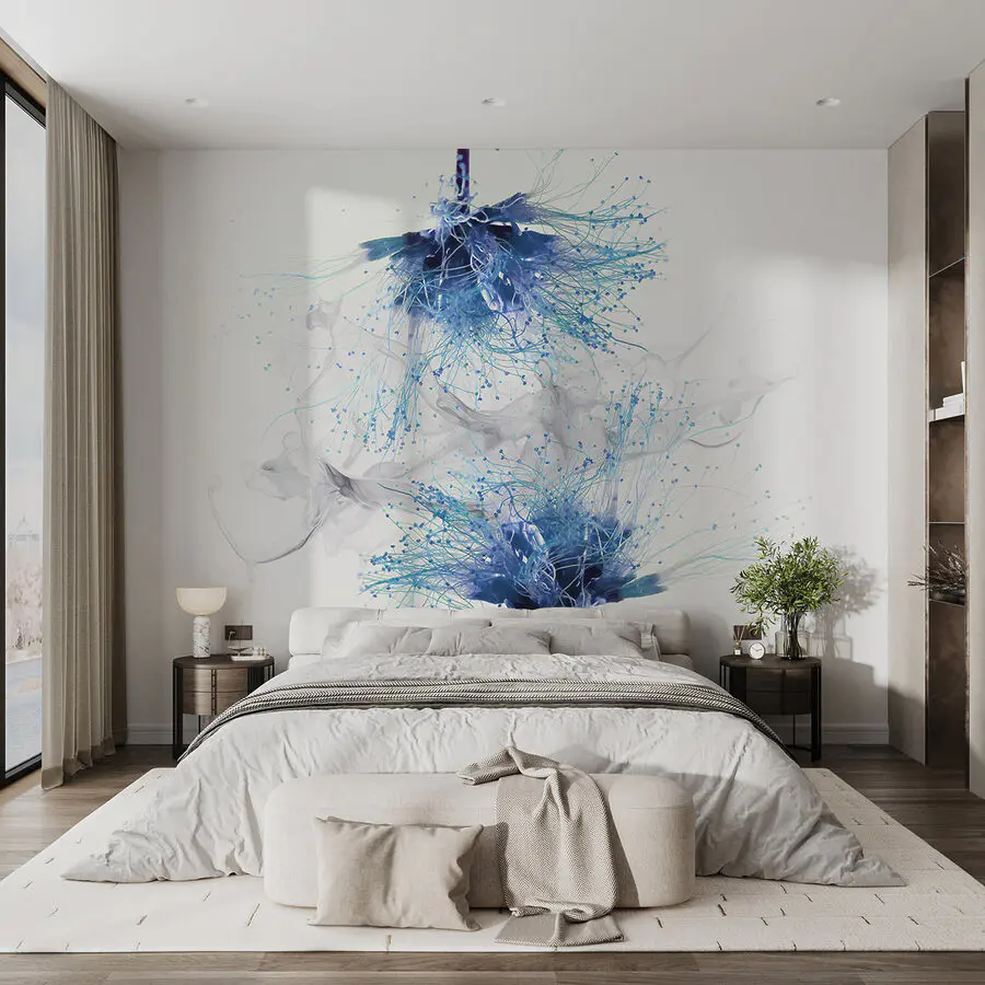 Fotomurales Flores azules con tinta blanca en el aire