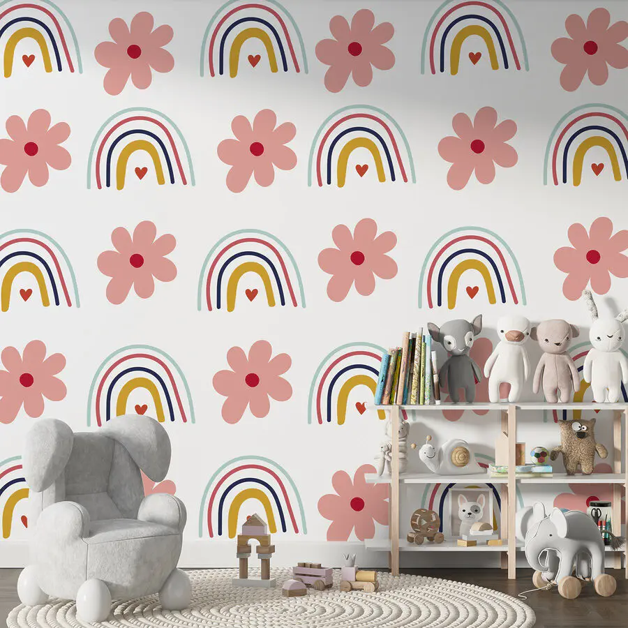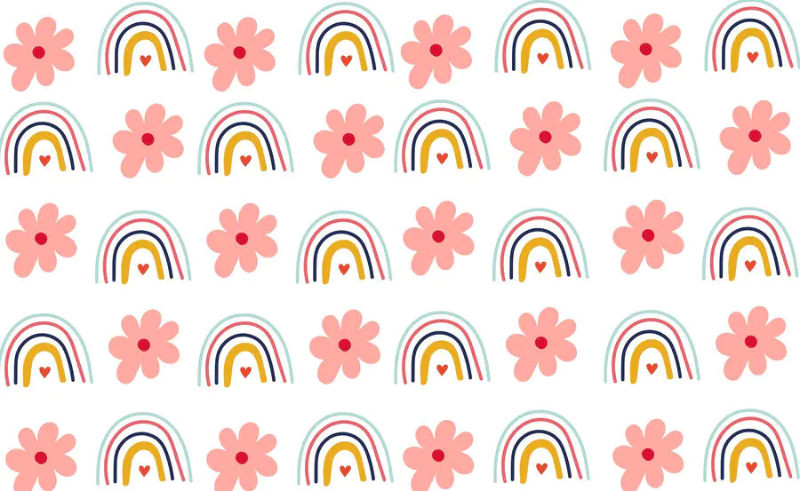 Fotomurales Patrón de flores y arco iris