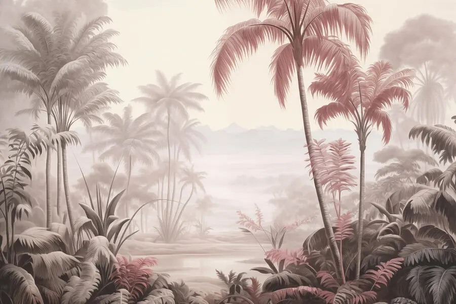 Fotomurales Paisaje con palmeras y montañas
