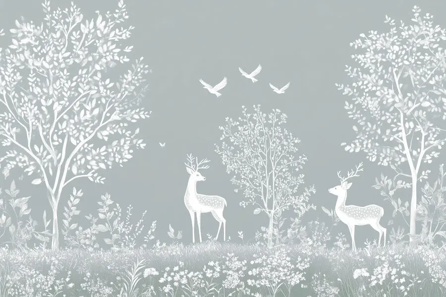 Fotomurales Ciervos blancos y pájaros en un bosque