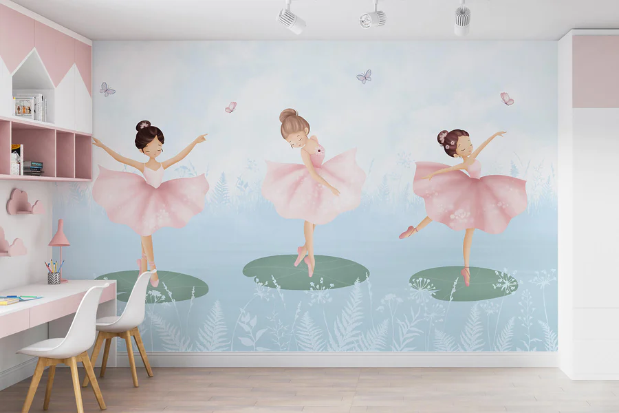 Fotomurales Grupo de niñas con tutú rosa bailando sobre nenúfares