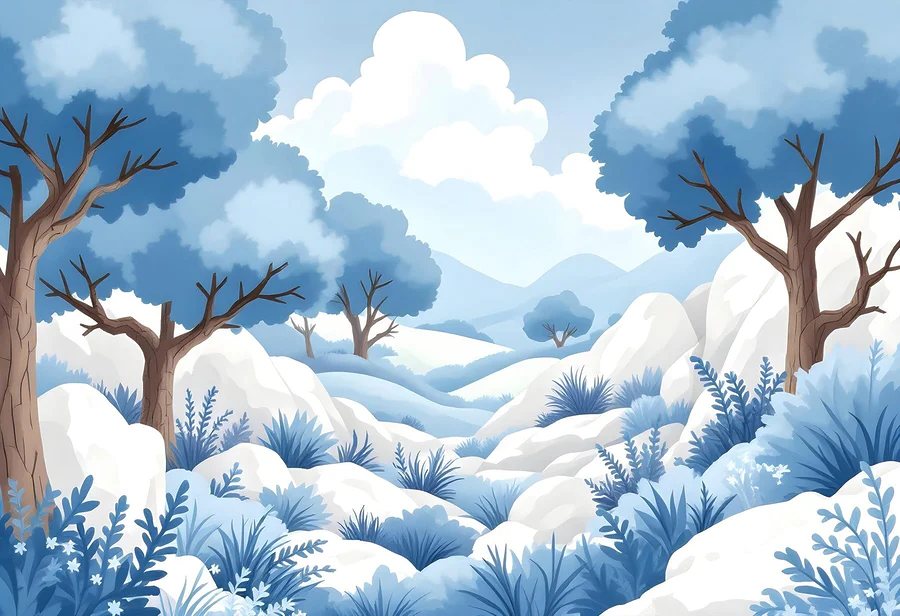Fotomurales Paisaje nevado con árboles y arbustos