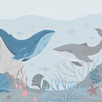 Sumérgete en un caprichoso mundo submarino con los "Murales de pared Ballena y ballena bajo el agua". Imagínatelo: gentiles gigantes deslizándose por un mar tranquilo, rodeados de vibrantes corales y juguetones peces. Es como llevarse un trozo del océano al salón de casa. Imagina lo relajante que sería contemplar estas majestuosas ballenas después de un largo día, evocando una sensación de paz y asombro. Perfecto para la habitación de un niño o incluso para un acogedor rincón de lectura, este mural da vida a cualquier pared. Además, ¿quién no querría un tema de conversación majestuoso y sereno a la vez? Perfecto tanto para los soñadores como para los amantes del océano.