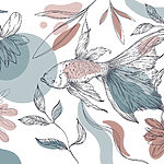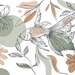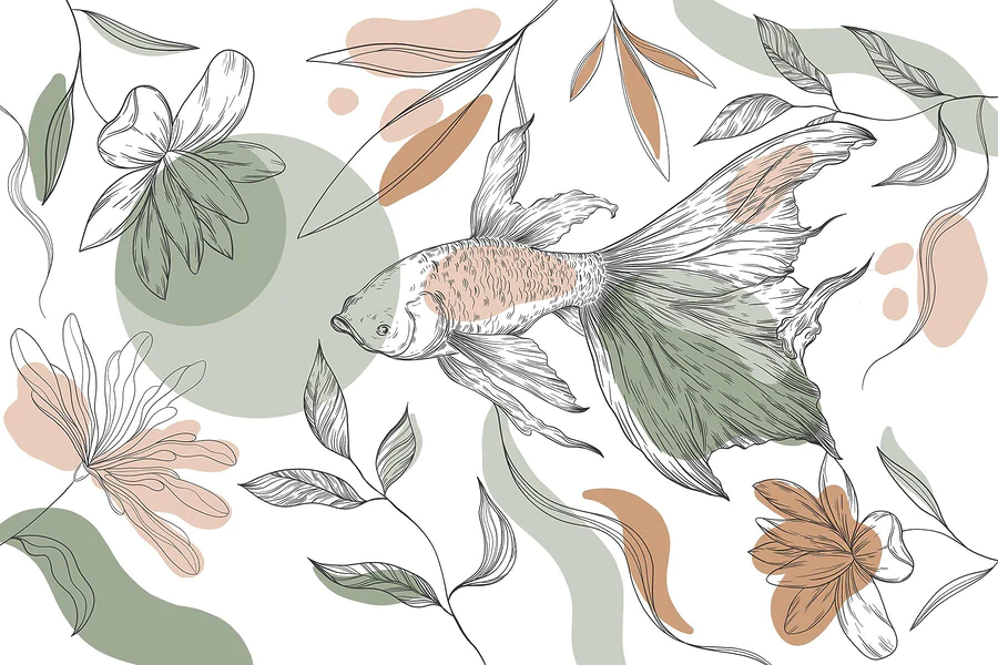 Fotomurales Peces y plantas sobre fondo blanco