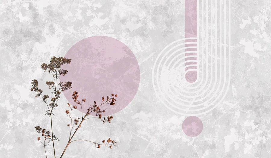 Fotomurales Planta con hojas marrones y círculos morados