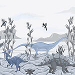Transforme su espacio en un paraíso prehistórico con este cautivador mural de pared que muestra una bandada de dinosaurios deambulando por un desierto iluminado por el sol. Imagínese que los ricos colores dan vida a sus paredes, mientras estas magníficas criaturas despiertan interminables conversaciones y recuerdos de la infancia. No es sólo decoración; ¡es una aventura que espera ser explorada! Perfecto para una habitación de juegos o incluso para un rincón acogedor, este mural crea un telón de fondo que es como entrar en otro mundo. Imagínatelo: noches de cine con temática de dinosaurios o sesiones de cuentacuentos que capturan la imaginación de los más pequeños. La vibrante escena mantendrá vivo el espíritu de aventura, a la vez que añade un toque de encanto inusual a cualquier habitación.
