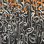 Fotomurales Arte en blanco y negro con líneas naranjas y blancas