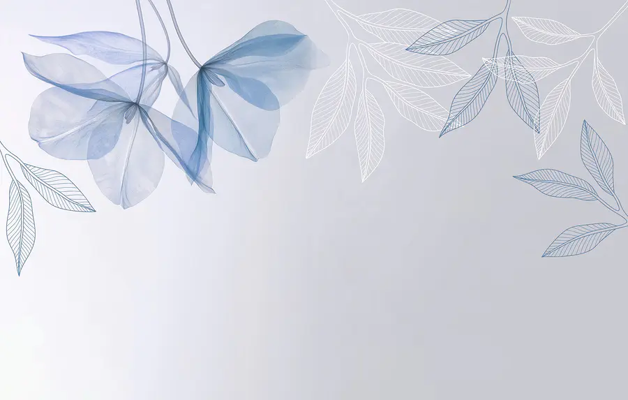 Fotomurales Hojas azules y blancas