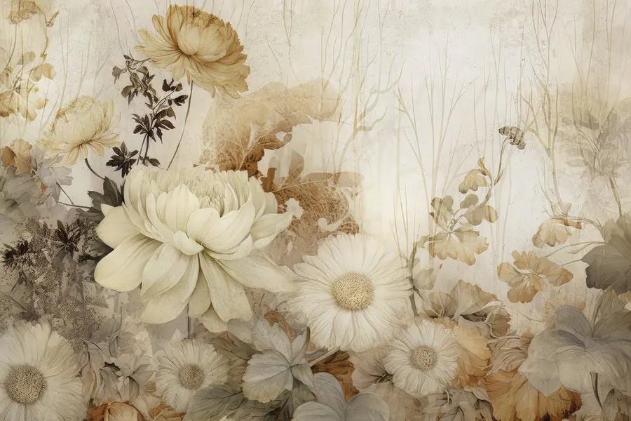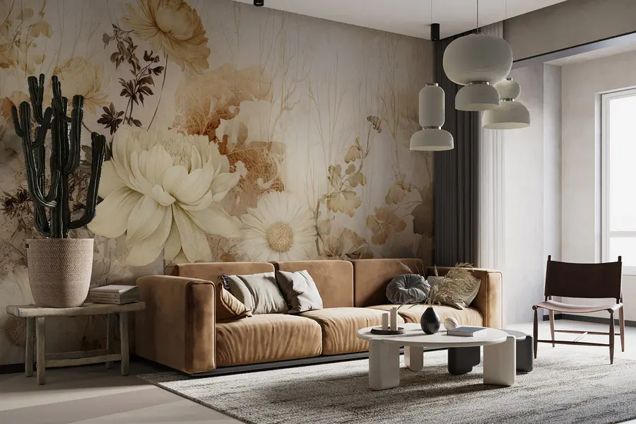Transforma cualquier habitación en un acogedor jardín de flores con este impresionante mural de pared. Es como llevar un poco de naturaleza al interior, sin el molesto polen. Los tonos suaves y apagados y las delicadas flores crean un ambiente tranquilo que puede convertir una pared aburrida en un refugio sereno. Imagínate tomando el café de la mañana mientras disfrutas de la belleza de las flores de gran tamaño, como si el jardín te susurrara secretos. Ya sea un salón, un dormitorio o incluso un divertido espacio creativo, este mural añade calidez y encanto. ¡Perfecto para los amantes de un toque fresco sin necesidad de regar!