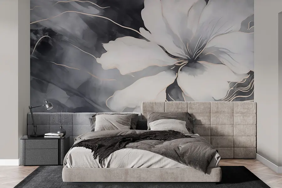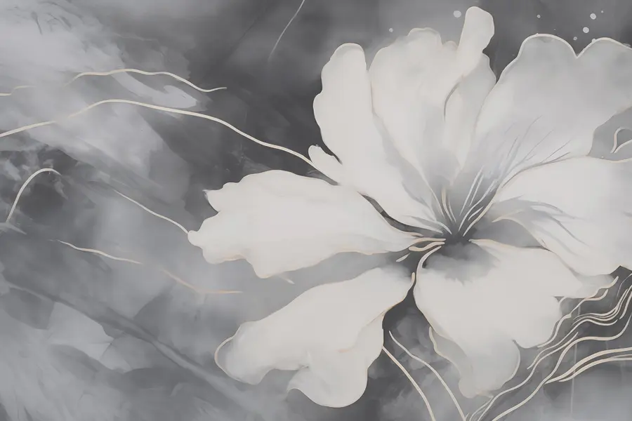 Fotomurales Flor blanca sobre fondo blanco y negro