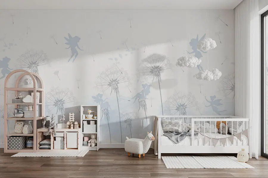 Fotomurales Un diente de león con hadas volando en el aire