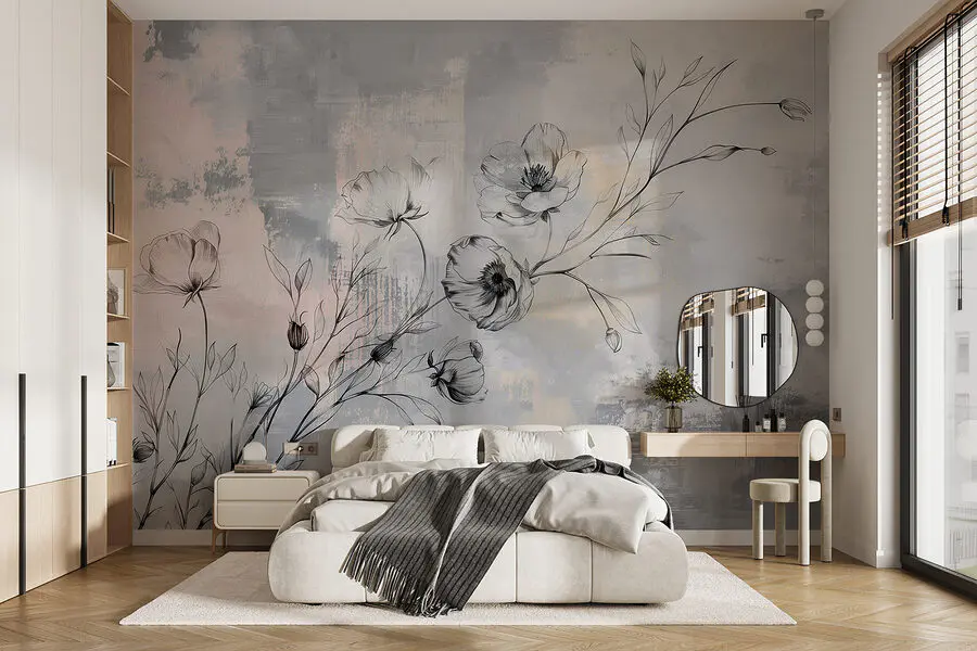 Fotomurales Dibujo de flores sobre fondo gris