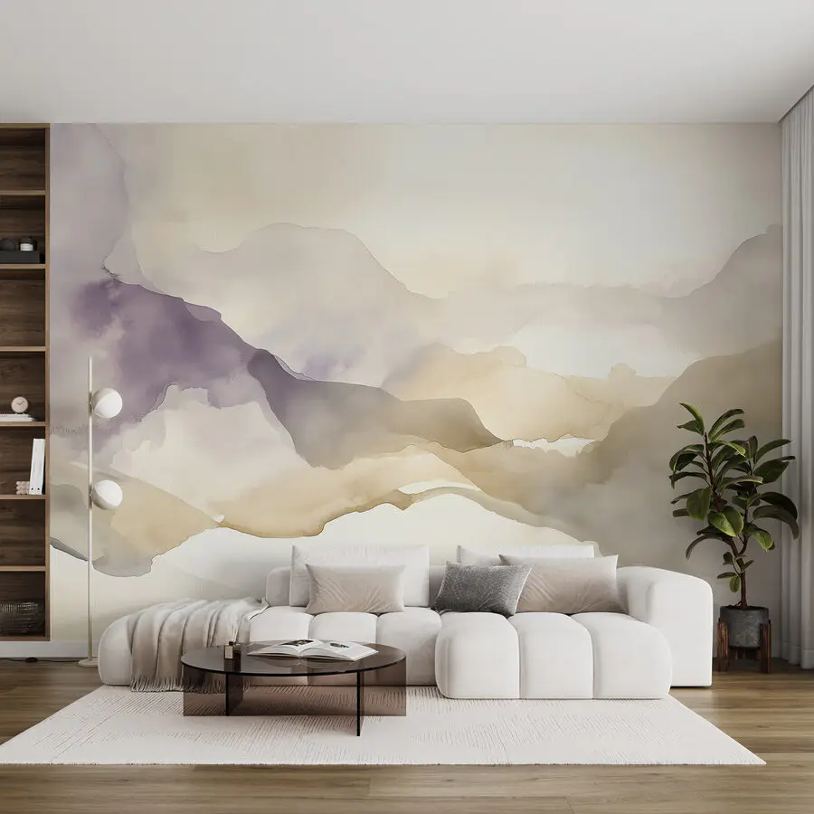 Transforme cualquier espacio en un refugio de paz con el mural de pared "Acuarela de montañas". Imagínatelo: suaves tonos morados y beige que se mezclan suavemente como un susurro de la naturaleza. Es como llevar un trozo de naturaleza a su salón, sin insectos ni botas de montaña. Imagínese tomando un café rodeado de esta serena vista, perfecta para soñar despierto o perderse en sus pensamientos. Tus amigos se preguntarán si te has instalado en una acogedora cabaña. Y además, este mural también hace maravillas en un dormitorio, convirtiendo tus noches en una escapada de ensueño. ¿Por qué conformarse con unas paredes normales y corrientes cuando puedes tener un telón de fondo impresionante y lleno de vida? Un poco de magia montañesa puede ser lo que necesita la decoración de su hogar.