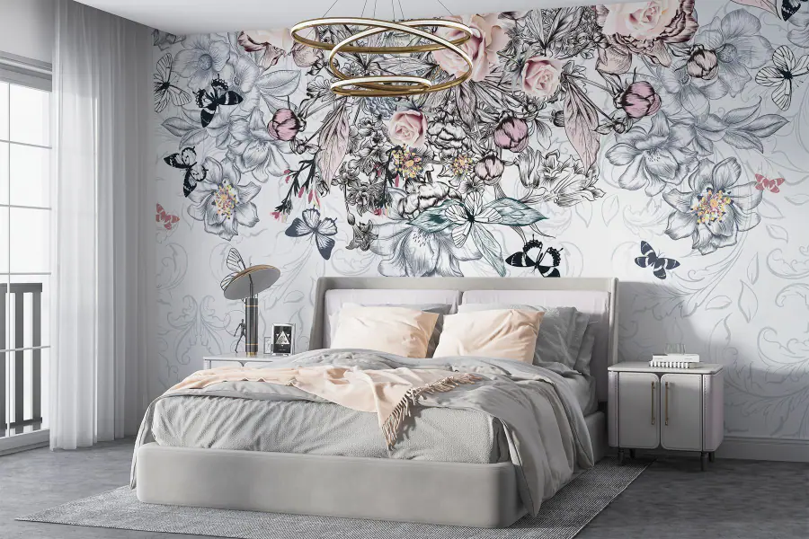 14.39 €7.91 €Fotomurales Papel pintado con flores y mariposas