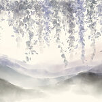 Fotomurales Pintura de un paisaje con niebla y hojas
