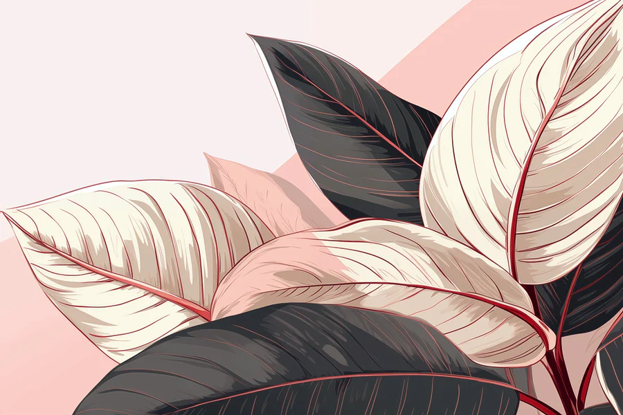 Fotomurales Exuberantes hojas en suaves tonos pastel