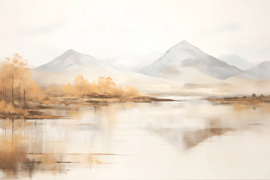13.88 €8.32 €Fotomurales Acuarela de un lago con árboles y montañas