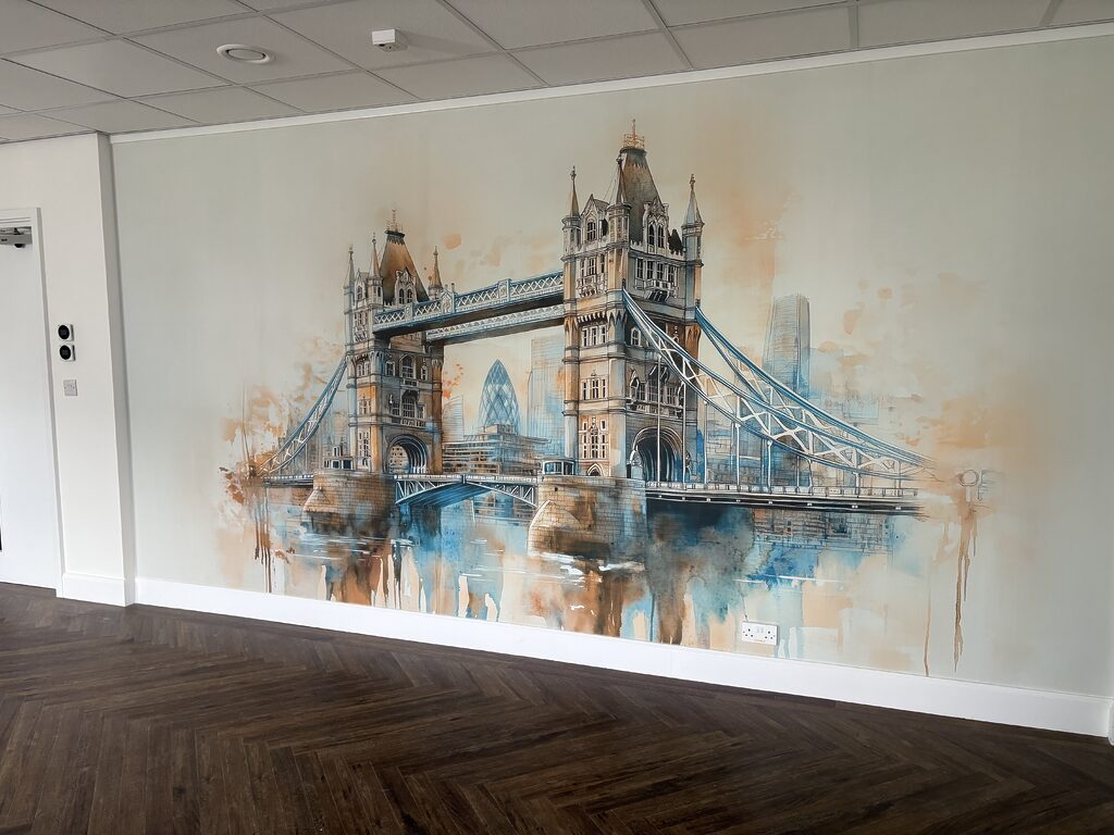 El mural del Puente de Londres queda genial en nuestra sala de juntas.